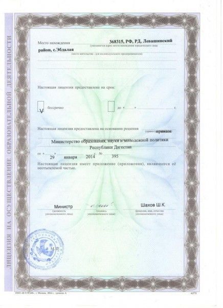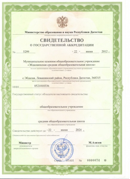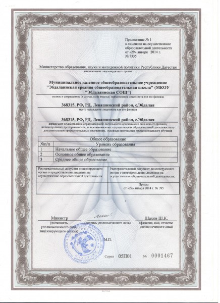 | Адрес местонахождения образовательной организации* | 368317, Республика Дагестан, Левашинский район, с. Эбдалая. Улица Республиканское шоссе №8 |